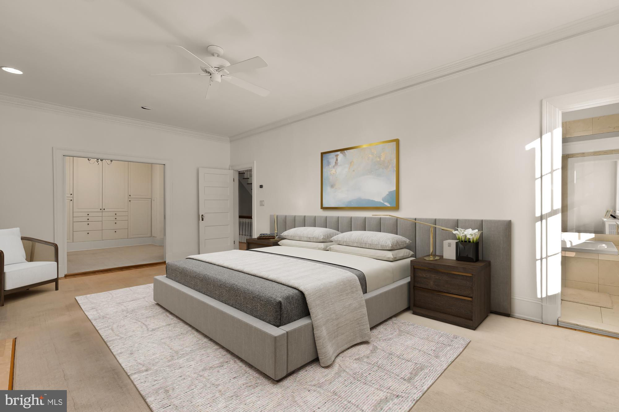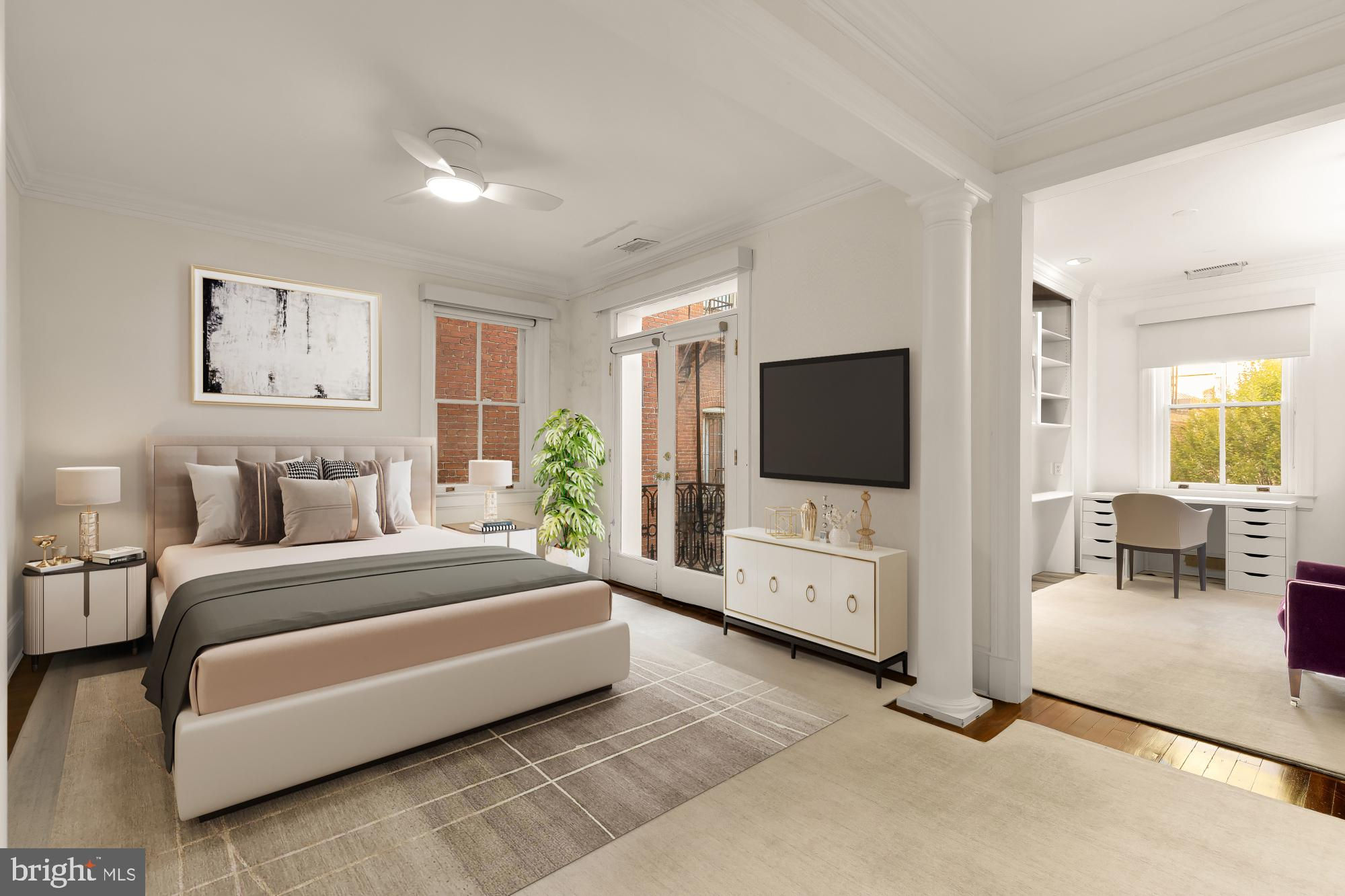 Welcome to 2137 R Street NW, a stately Federal residence perfectly positioned on one of the most sought-after blocks in Washington D.C., where Dupont Circle meets Kalorama and Georgetown, near the historic Spanish Steps and the distinguished Embassy Row. Nestled on the premier stretch of R Street, this home embodies timeless elegance and modern refinement. A gracious and flowing floor plan unfolds upon entry, revealing exquisite architectural detailing, intricate millwork, and fireplaces that define the home’s enduring character. The main level offers an impressive sense of scale with a grand living and dining room, a butler’s pantry with built-in wine storage, and a showpiece designer kitchen, meticulously crafted for both intimate dinners and large-scale entertaining. French doors extend the living space outdoors to a tranquil private patio, offering an idyllic setting for alfresco dining or quiet moments surrounded by lush greenery. The second level is devoted to a primary suite, accompanied by an inviting flex space and a beautifully appointed wet bar. A spacious multi-season screened porch, complete with integrated heat lamps, provides a serene retreat that captures the peaceful ambiance of Kalorama. The upper floors continue to impress with generously sized guest bedrooms and a dedicated home office, offering flexibility. The fully finished lower level includes a complete au pair or in-law suite, thoughtfully designed with a second kitchen, ideal for guests or extended stays. A rare attached secure garage adds exceptional convenience. Classic yet contemporary, 2137 R Street NW stands as a testament to architectural grace, thoughtful design, and modern luxury, a residence in one of Washington’s most prestigious and historically significant enclaves.